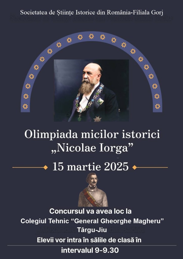 Faza județeană a Olimpiadei Micilor Istorici va fi găzduită în Gorj de către Colegiul Tehnic ”General Gheorghe Magheru” din Târgu-Jiu. Potrivit organizatorilor, respectiv SSIR Gorj, 81 de elevi sunt calificați în faza județeană a acestei competiții .